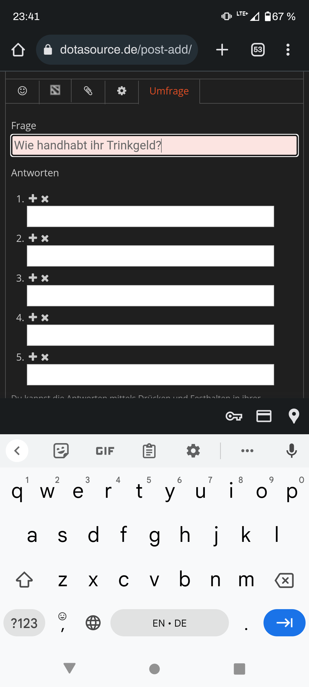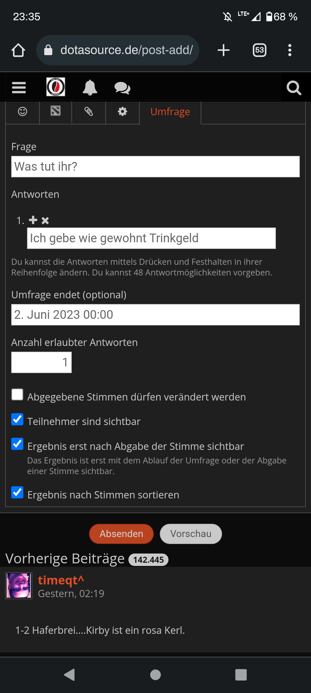 ich kann keine weiteren Antworten bei einer Umfrage hinzufügen, beim Klick auf das "+" passiert nix (Android 12/Chrome).